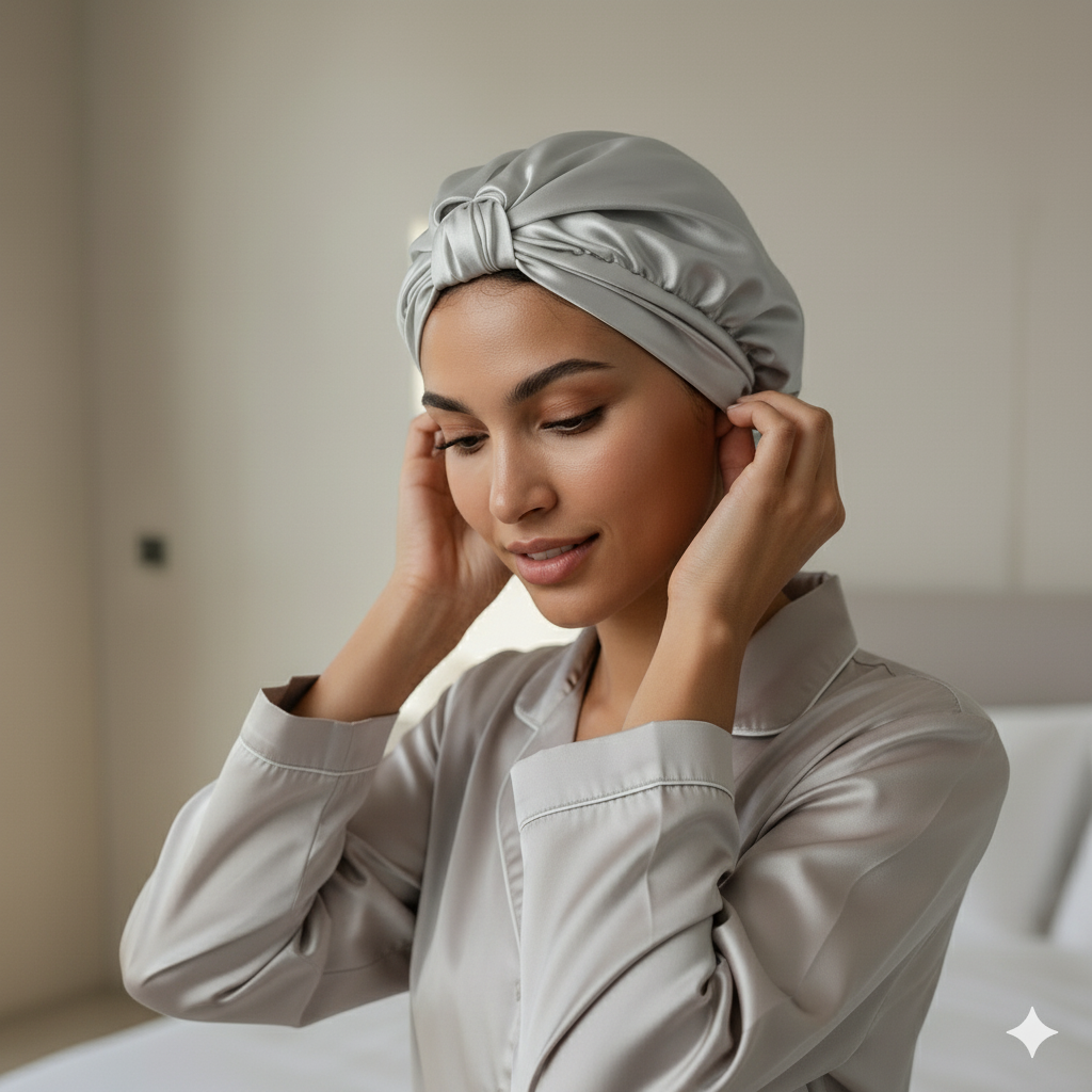 Aurica %100 dut ipeği saç bonesi, uyku sırasında saçlarınızı korumak için tasarlanmıştır.