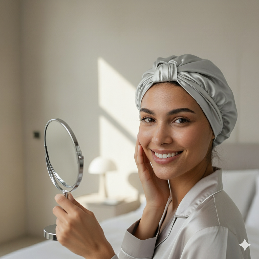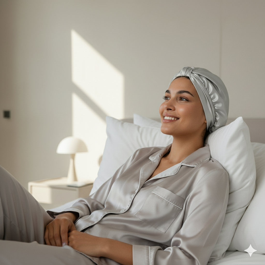 Aurica %100 dut ipeği saç bonesi, sıradan saten veya polyester bonelerden farklı olarak saçınızı en doğal şekilde korur. Kabarma ve kırılmaları önler, nem ve parlaklığı hapseder, her sabah bakımlı ve sağlıklı saçlarla uyanmanızı sağlar.
