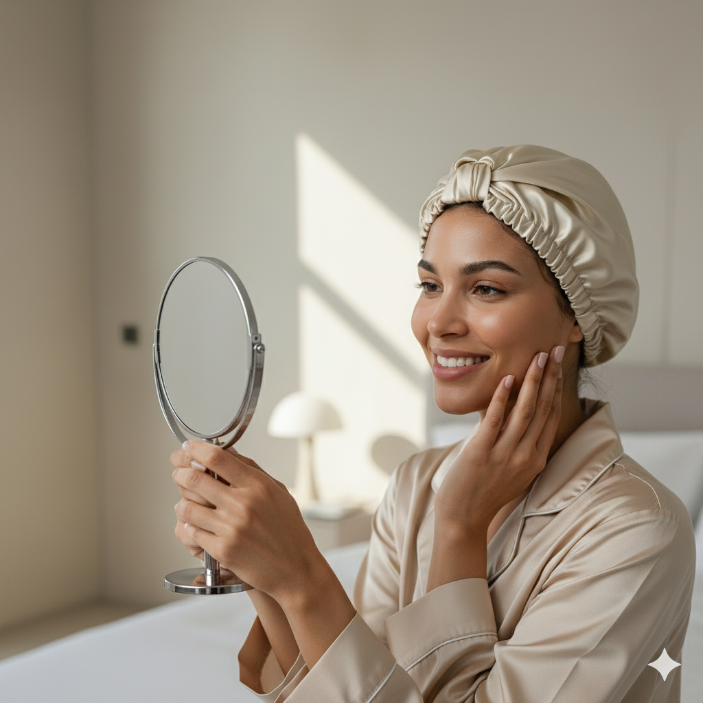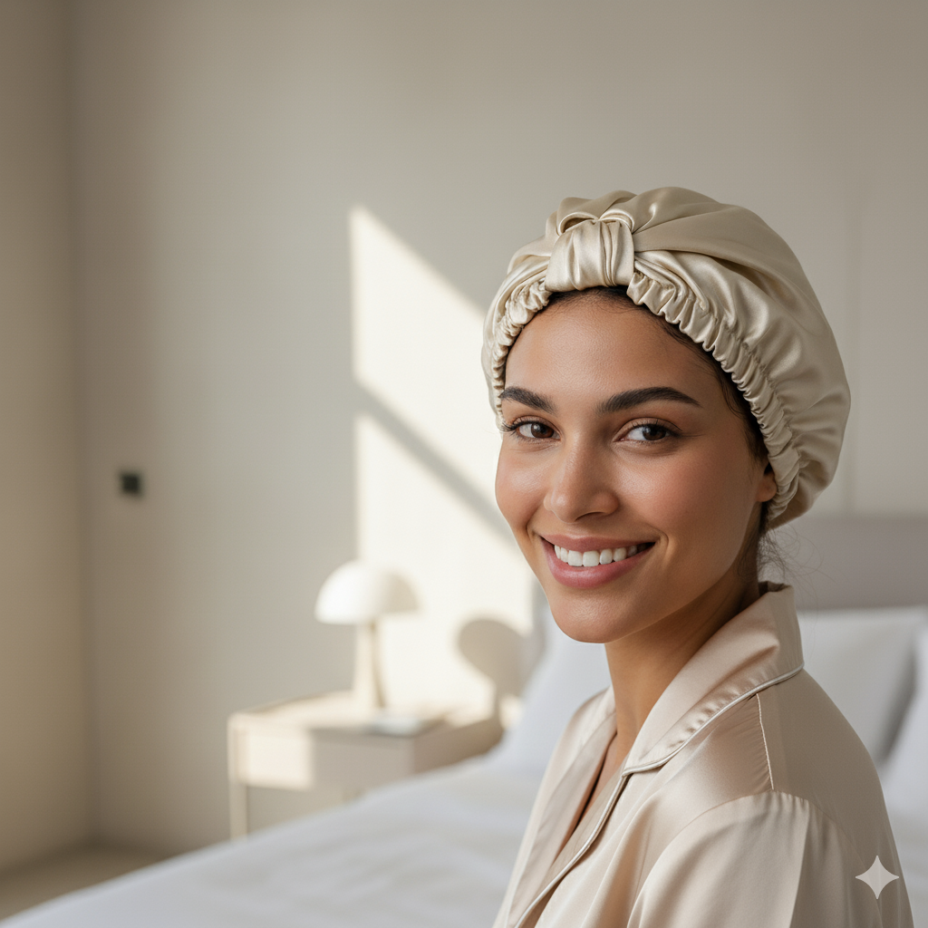Aurica %100 dut ipeği saç bonesi, sıradan saten veya polyester bonelerden farklı olarak saçınızı en doğal şekilde korur. Kabarma ve kırılmaları önler, nem ve parlaklığı hapseder, her sabah bakımlı ve sağlıklı saçlarla uyanmanızı sağlar.